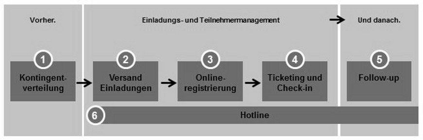 ist ein onlinebasiertes Teilnehmermanagement-System. Es bietet höchste Effizienz und unterliegt den aktuellen Sicherheitsrichtlinien. Das System ist modular aufgebaut und kann von der Einladung, über die Online-registrierung, das Ticketing und den Check-in bis hin zur Evaluation und ein Follow-up den gesamten Prozess des Teilnehmermanagements oder Teilleistungen daraus übernehmen. Layout und Inhalte können dabei flexibel an die Wünsche des Users angepasst werden.